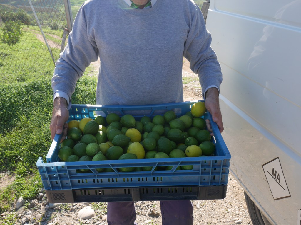 Antonio Gonzal, sa femme et leur enfants sont situés sur la commune de Pizarra (Malaga). Ce sont les producteurs avec qui nous travaillons les plus “gros” en termes de superficies exploitées. Ils ont plusieurs dizaines d’hectares sur les communes de Pizarra, Alora et Cartama. Antonio est un des pionniers du bio dans le coin (depuis 1995) et produit une multitude de fruits. Nous lui achetons principalement des citrons et des oranges (de début de saison). Mais il arrive que nous lui prenions aussi des grenades et clémentines à certains moment de la saison. Il cultive également des pomelos, des pêches, …