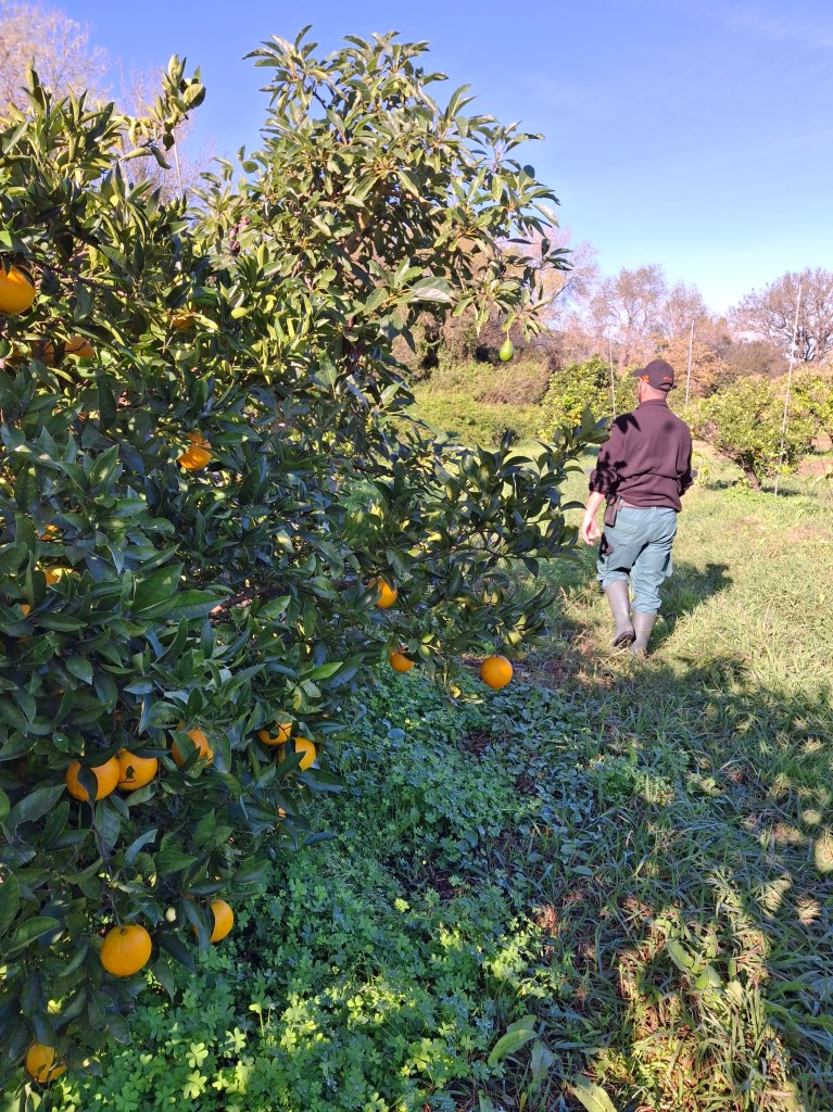 David cultive des terres sur la province de Cadiz, dans le village de Castellar de la Frontera. Il décide de stopper l’utilisation de pesticides chimiques en 2008. Certifié en bio depuis 2014, il a depuis diversifié les variétés de fruits sur son champ pour plus de biodiversité : avocats, oranges, citrons, pamplemousses et clémentines. David est un des rares producteurs a faire passer des brebis d’un berger du coin, pour enlever l’herbe entre les rangées d’arbres, et profiter des excréments qu’elles laissent au passage !